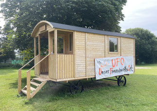 Das UFO ist der Holzbauwagen im Freibad auf der Sportwiese
